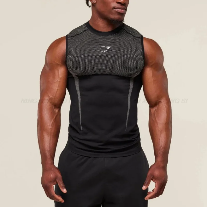 Men's Tight vest sports summer quick-drying breathable seamless fitness running training stretch tight top man sleeveless vest